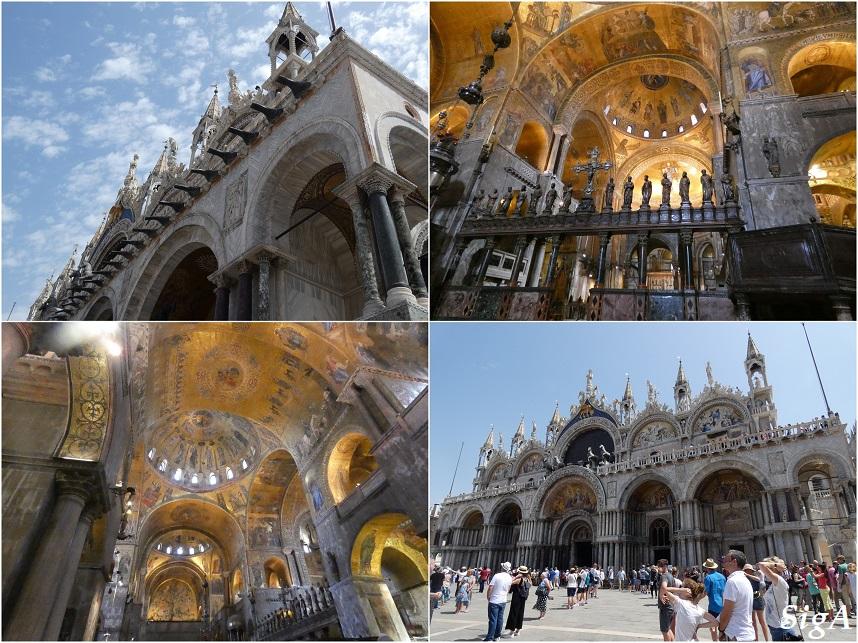 Pokračovali jsme na náměstí Svatého Marka a vystáli si frontu do stejnojmenné baziliky. Těsně před vstupem byl muž zastaven ochrankou. Měl na zádech batoh. Musel s ním odejít do nedaleké úschovny zavazadel. Takže jsem čekala a všímala si, že není zdaleka jediný, koho nepustili. Zastavovali také ženy, které měly odhalená ramena. Těm půjčovali jakýsi přehoz z netkané textilie. S podobnými přehozy jsem se setkala i v bazilice Santa Maria Novella ve Florencii. Z jiných kostelů bez pardónu vyhazovali. I já sama jsem to zažila v Apulii, když jsem se v tílku snažila dostat dovniř. Od té doby, jsa poučena, navštěvuji církevní památky v triku s rukávem, nebo si přes ramena vážu plážový šátek. Když se muž vrátil bez batohu, pokračovali jsme dovnitř. Nesmí se tu fotit, ale spousta návštěvníků tento zákaz porušovala. A to to bych nesměla být já, abych se také nepřipojila. Fotila jsem i v Sixtinské kapli ve Vatikánu, kde to kustodi opravdu důsledně hlídali. Mých 164 cm výšky je v těchto případech výhodou. Na věž San Marco se nám nechtělo, fronta před ní byla nekonečná a byla by škoda věnovat čas čekáním a nevidět další poklady, které toto město nabízí.